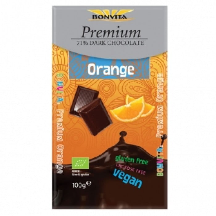 Εξαιρετικής ποιότητας και γεύσης σοκολάτα μαύρη με γεύση πορτοκάλι με τουλάχιστον 71% κακάο που βασίζεται σε δίκαιο εμπόριο αφού οι πολύτιμοι σπόροι του κακάο συλλέγονται από αγρότες που απολαμβάνουν τα προνόμια μίας δίκαιης τιμής (fair trade) Οι σοκολάτες Bonvita είναι βιολογικές χωρίς λακτόζη, χωρίς γλουτένη και είναι κατάλληλες τόσο για τους χορτοφάγους όσο και για vegans.